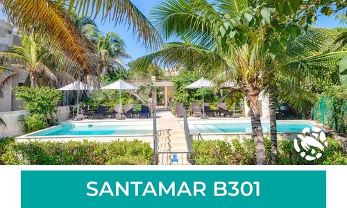 Santamar is a beautifully designed 2-bedroom, 2-bath penthouse located in Punta Sur, Akumal. Set on the third floor, it showcases panoramic ocean views across the Caribbean ironshore and a tranquil jungle backdrop.