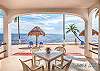 The open-plan living and dining area flows seamlessly onto a private beachfront patio, creating an airy space that’s ideal for relaxing indoors or out. Step onto your patio to enjoy the sea breeze, take in views of the turquoise water, or wander just a few steps to the shared beachfront area, where palapas and lounge chairs invite you to unwind.